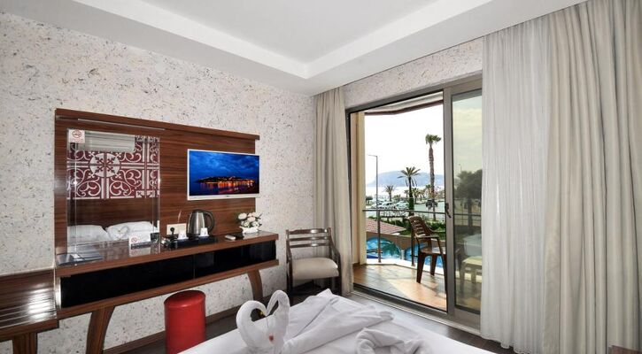 Smeštaj: Hotel poseduje 102 sobe.Standardne sobe - dvokrevetne ili dvokrevetne sa pomoćnim ležajem smeštene u glavnoj ili anex zgradi kako je i predviđeno cenovnikom, opremljene su sa TWC-om, TV-om, klima uređajem, sefom (dodatno se plaća) fenom, mini barom (dodatno se plaća), i balkonom.