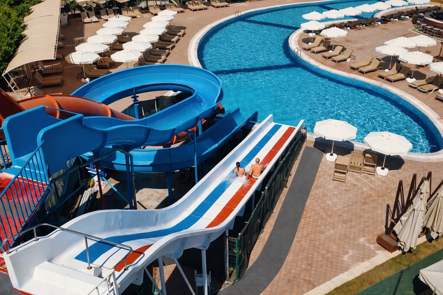 Sadržaj: recepcija, glavni restoran, a la carte restoran, lobi bar, bar pored bazena, bar na plaži, snek bar, bazen za decu i odrasle, vodeni tobogani, spa centar, tursko kupatilo, saunu, fitnes, mini klub za decu, zabavni program tokom dana i večeri.