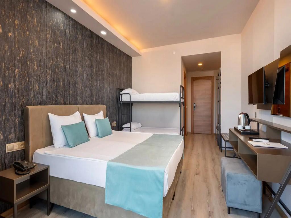 Soba sa krevetima na sprat sa balkonom/terasom, nalaze se u glavnoj zgradi, površine oko 30 m2, sastoje se od jedne prostorije sa dva standarna kreveta (francuski krevet ili dva odvojena kreveta) i krevetima na sprat.