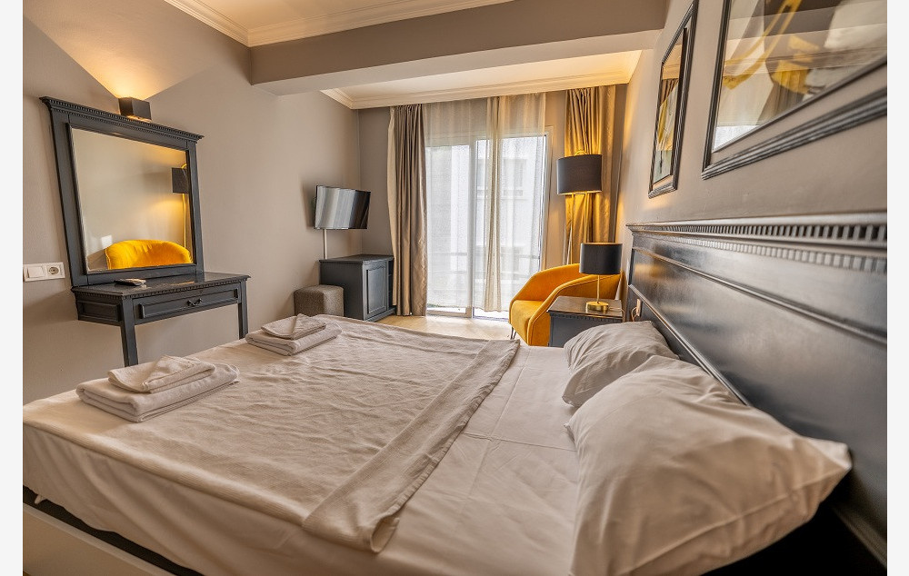 Smeštaj: Standardne sobe - dvokrevetne ili dvokrevetne sa pomoćnim ležajem, opremljene TWC-om, TV-om, klima uređajem, fenom za kosu, telefonom, balkonom i mini barom (dodatno se plaća). Kapacitet sobe:max 3 odrasle osobe