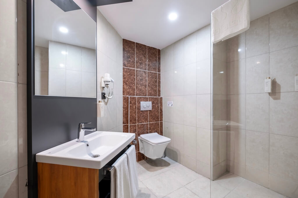 Smeštaj: Standardne sobe - dvokrevetne ili dvokrevetne sa pomoćnim ležajem, opremljene TWC-om, TV-om, klima uređajem, balkonom, fenom za kosu.