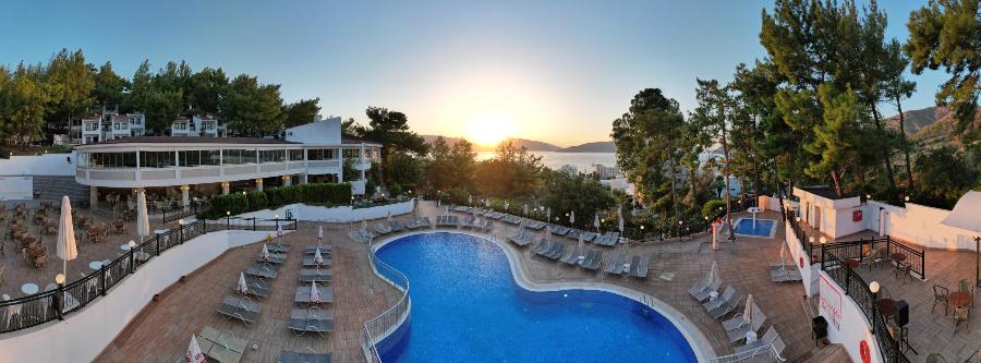 Lokacija: nalazi se oko 3.5 km od centra Marmarisa,na blagom uzvišenju ,okružen bujnom vegetacijom.Hotel se sastoji iz glavne i anex zgrada u kojima su smeštajne jedinice kaskadno reaspoređene. Hotel poseduje 202 smeštajne jedinice.