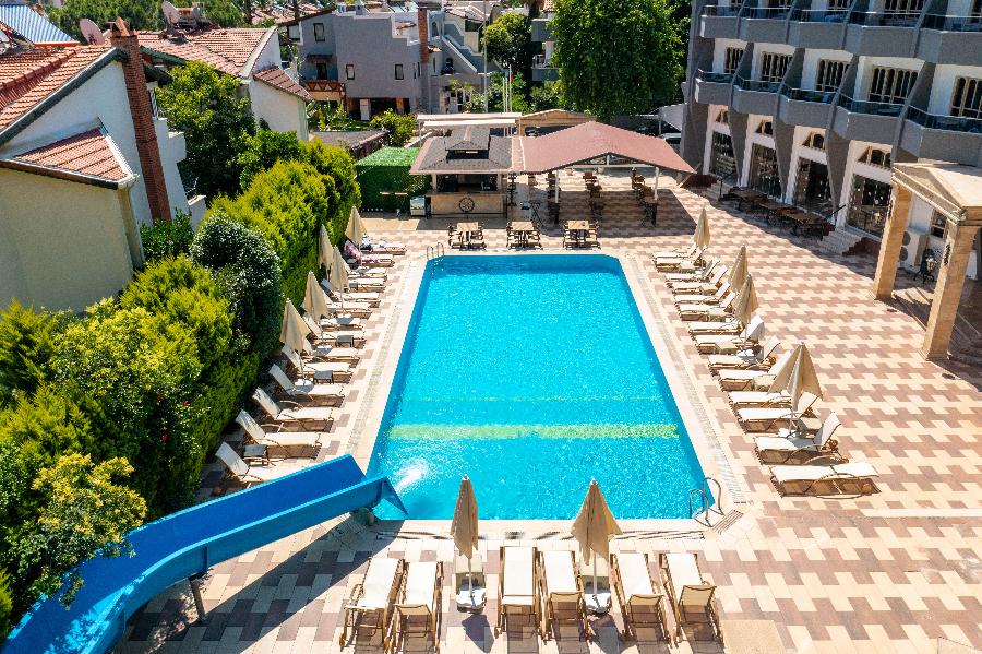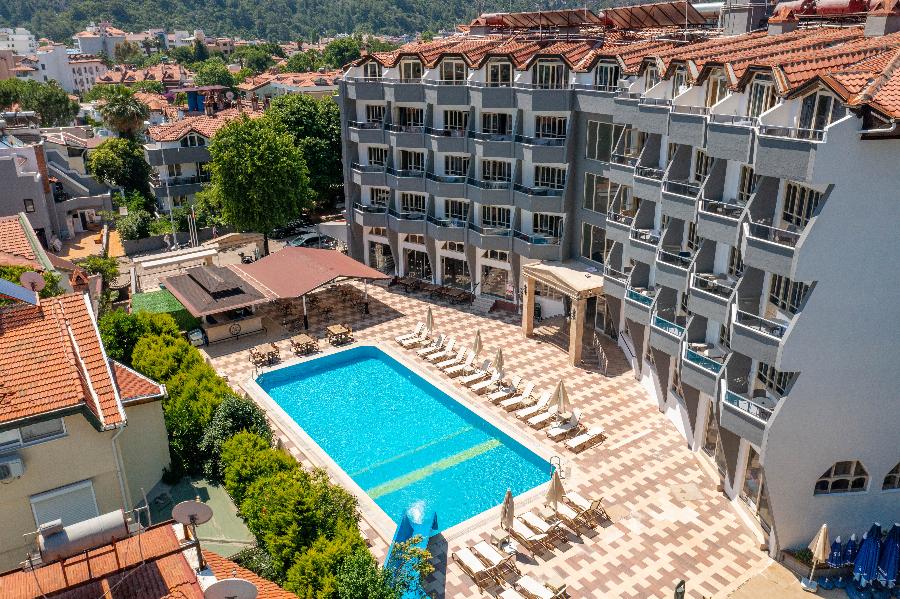 Lokacija: nalazi se u uvali Ičmeleru, oko 7 km od Marmarisa. Kompleks koji se sastoji iz dva bloka zgrada koje deli ulica i smeštaj se vrši po principu “run of the house” tj. u bilo koje zvanično registrovane smeštajne jedinice i određuje na licu mesta u zavisnosti od raspoloživih kapaciteta, te nije moguće birati objekat u kome će putnici biti smešteni. Hotel ima zvanično 3*, ali po našem mišljenju hotel odgovara standardima između 3* i 2 *.