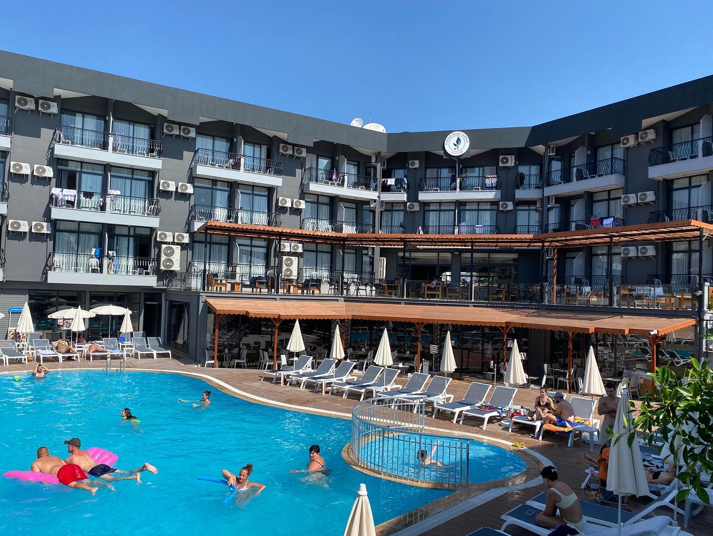 Sadržaj: recepcija, restoran, lobi bar, bar pored bazena, bazen za odrasle, bazen za decu, stoni tenis, wellness i spa centar.